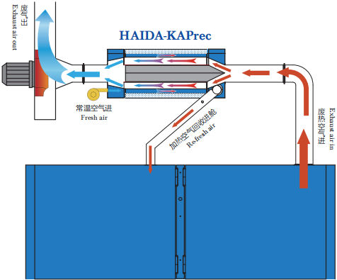 定形機(jī)運(yùn)行過程中,產(chǎn)生廢氣的溫度達(dá)到 140 度到 200 度,安裝此廢熱回收裝置,能將排出的廢熱,轉(zhuǎn)為加熱新鮮空氣,補(bǔ)充給定形機(jī)使用。經(jīng)濟(jì)有效,安裝維護(hù)方便。