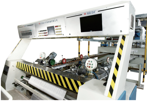 通過左右超喂毛刷橡膠輪同步上針,毛刷輪超喂可分別調(diào)節(jié)布邊張力。